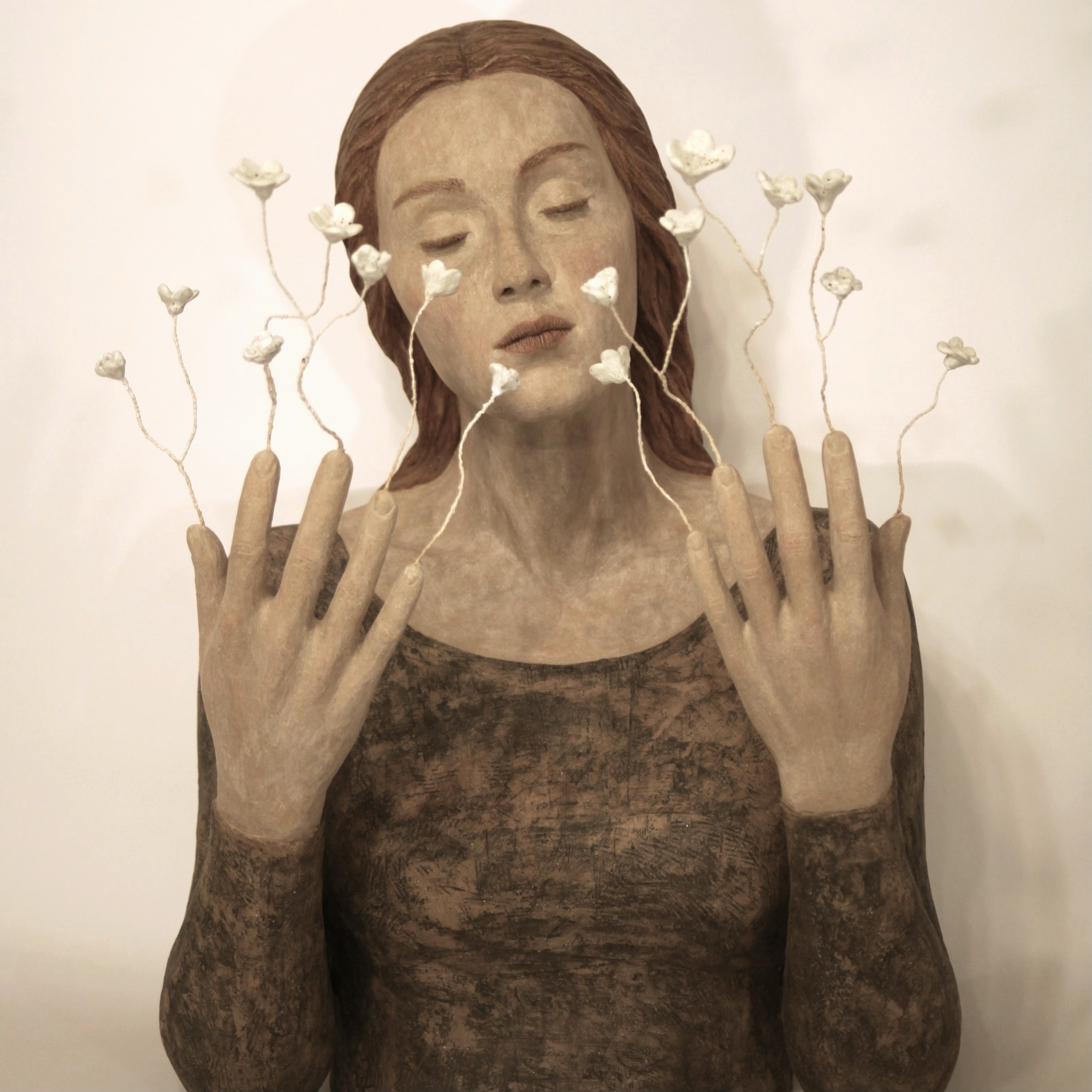 (Métamorphose, grès et technique mixte, 40 x 40 x 55 cm, 2024)